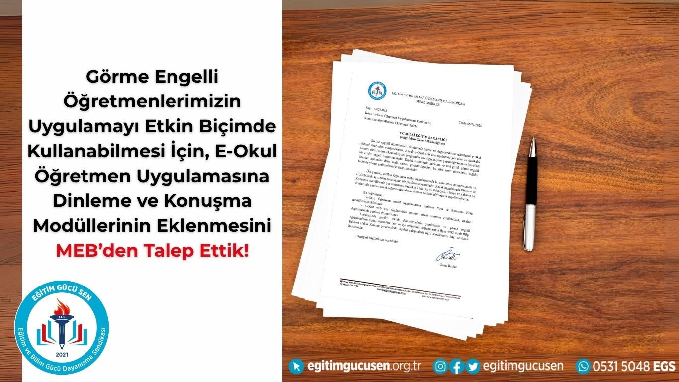 Görme engelli öğretmenler, derslerinde ölçme ve değerlendirme işlemlerini e-Okul sistemi üzerinden yürütmektedir. Ancak e-Okul web ana sayfasında yer alan 10 dakikalık oturum süresi sınırı, ekran okuyucu programlar aracılığıyla işlem yapan öğretmenler için ciddi bir erişim engeli oluşturmaktadır. Dijital sistemlerde gezinme ve veri girişi, görme engelli bireyler açısından daha fazla zaman gerektirdiğinden, bu süre sınırı görevlerini sağlıklı biçimde yerine getirmelerini zorlaştırmaktadır.