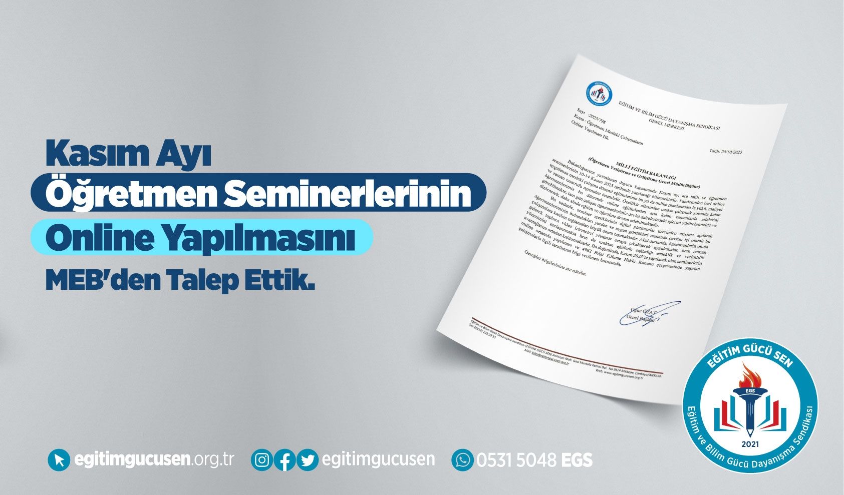 Milli Eğitim Bakanlığı tarafından yayınlanan duyuru kapsamında Kasım ayı ara tatili ve öğretmen seminerlerinin 10-14 Kasım 2025 tarihinde yapılacağı bilinmektedir. Pandemiden beri online uygulanan mesleki çalışma dönemi eğitimlerinin bu yıl da online planlanması iş yükü, maliyet ve zaman tasarrufu açısından önemlidir. Özellikle ailesinden uzakta çalışmak zorunda kalan öğretmenlerimiz bu dönemde online eğitimlerden arta kalan zamanlarda ailelerini görebilmekte; tam gün çalışan öğretmenlerimiz devlet dairelerindeki işlerini yürütebilmekte ve dinlenerek, daha zinde eğitim ve öğretime devam edebilmektedir.