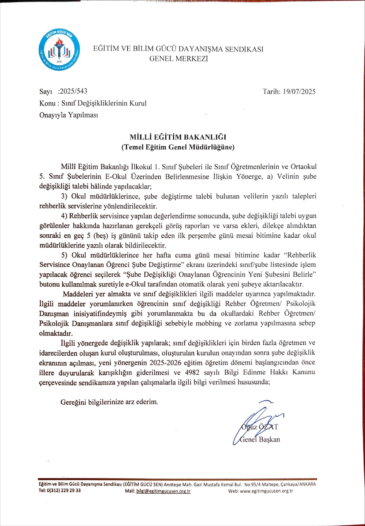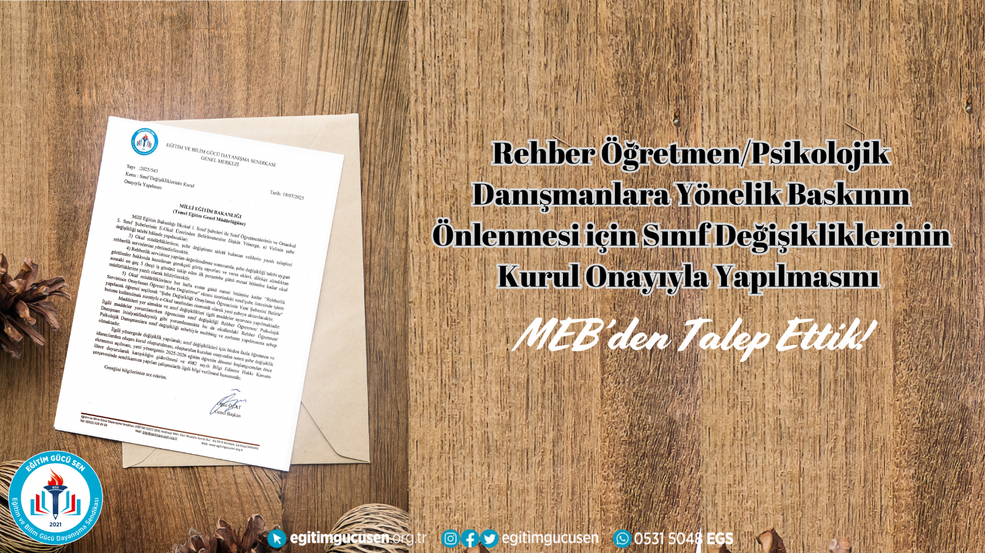 Maddeleri yer almakta ve sınıf değişiklikleri ilgili maddeler uyarınca yapılmaktadır. İlgili maddeler yorumlanırken öğrencinin sınıf değişikliği Rehber Öğretmen/Psikolojik Danışmanların inisiyatifindeymiş gibi yorumlanmakta bu da okullardaki Rehber Öğretmen/Psikolojik Danışmanlara sınıf değişikliği sebebiyle mobbing ve zorlama yapılmasına sebep olmaktadır.