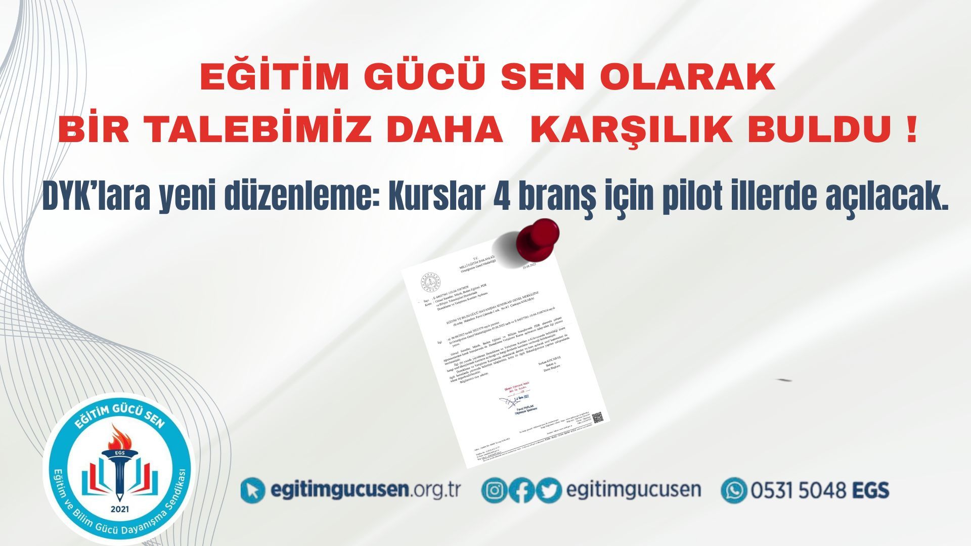 Eğitim Gücü Sen Olarak Bir Talebimiz Daha Karşılık Buldu!