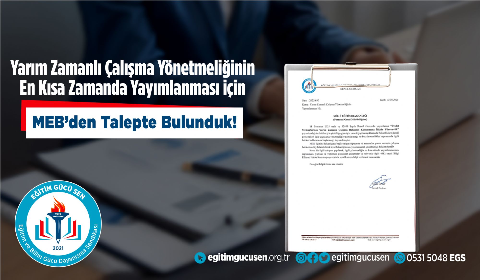 Konu ile ilgili çalışma yapılarak; ilgili yönetmeliğin en kısa sürede yayımlanmasının sağlanmasını MEB'den talep ettik.