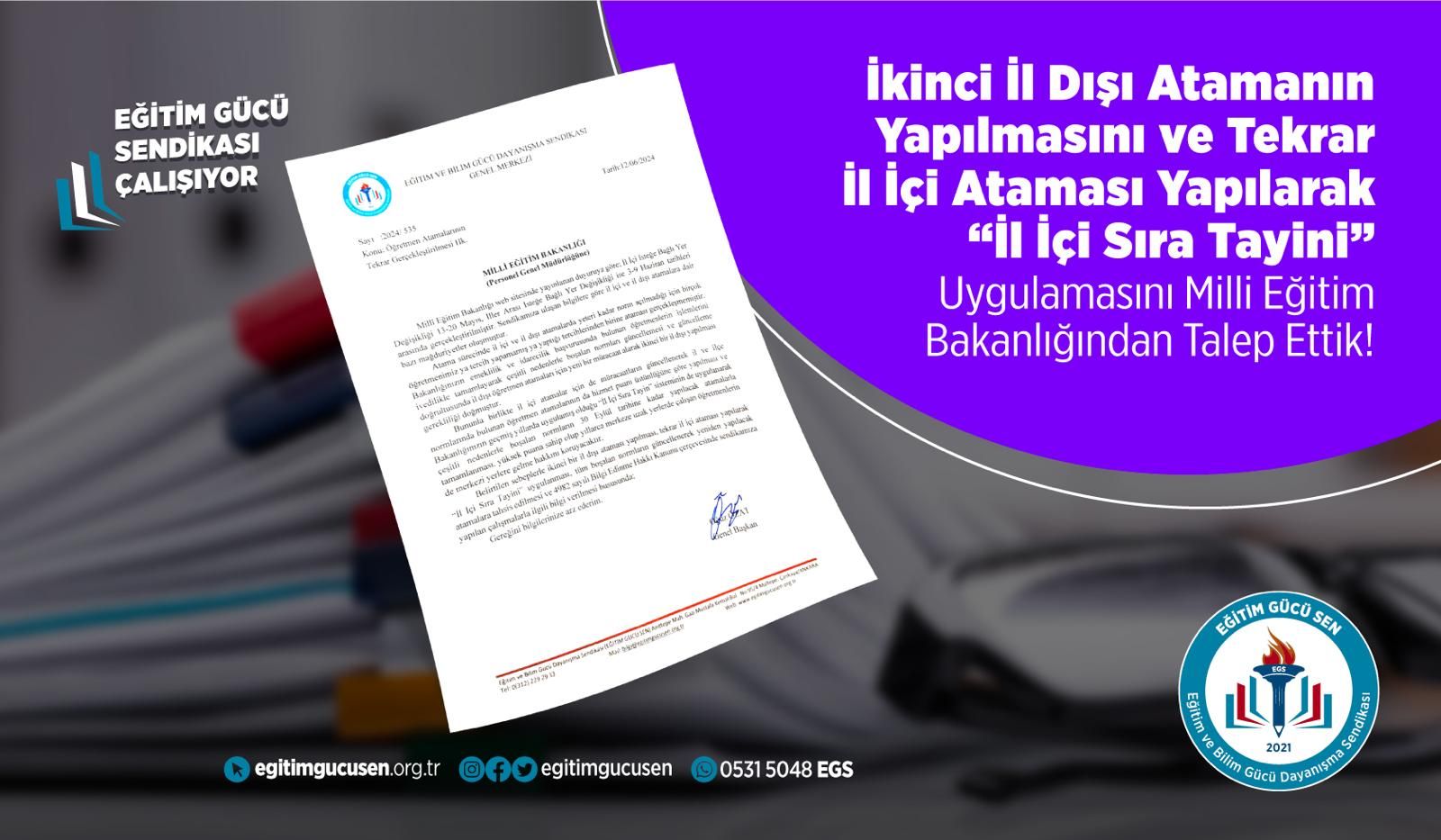 Millî Eğitim Bakanlığı web sitesinde yayınlanan duyuruya göre; İl İçi İsteğe Bağlı Yer Değişikliği 13-20 Mayıs, İller Arası İsteğe Bağlı Yer Değişikliği ise 3-9 Haziran tarihleri arasında gerçekleştirilmiştir. Sendikamıza ulaşan bilgilere göre il içi ve il dışı atamalara dair bazı mağduriyetler oluşmuştur.